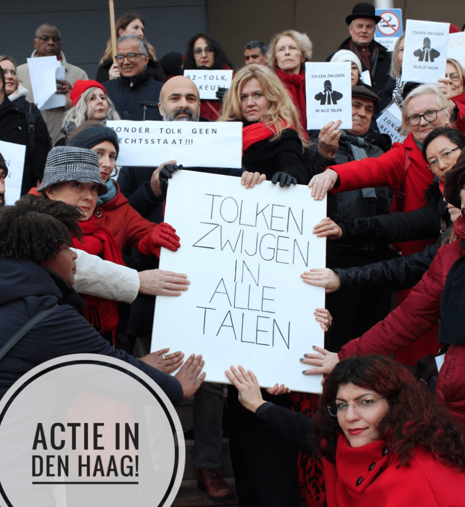 I Nederland har rettstolkene vært i streik siden 13. januar, i protest mot at registeret åpner for tolker som bare fyller språkkravene til B2 og ikke behøver å fylle noen kunnskaps- eller utdanningskrav, hverken for å bli registrert eller som faglig oppdatering og profesjonalisering – men får samme lønn. Byråene jubler – som her, tar de opp til 50 % av tolkenes honorar.