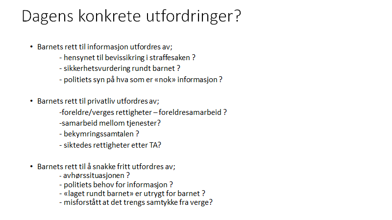 Alt barnefaglig arbeid i Norge skal ha barnets beste som overordnet mål, men det er ikke alltid barn og voksne er enige om hva som er best for barnet, og fagetater er også ofte uenige seg imellom. Barns rett til å snakke fritt, til å få informasjon og til privatliv kommer ofte i konflikt med myndighetspersoners oppfatning av barnets beste.