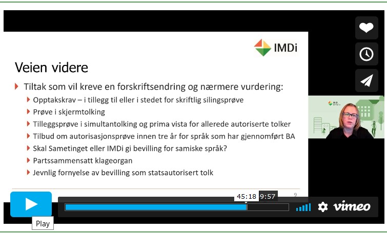 Oppdatert lenke for å se webinaret: Evaluering av autorisasjonsordningen for tolker | IMDi