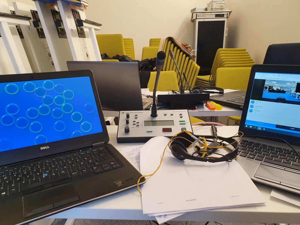 As far as permanent interpretation booths are concerned, advances have been made, for instance on improving the interpreters’ view of speakers, the podium and presentations, as well as their access to an Internet connection (WLAN) and a sufficient power outlets for laptops, tablets, etc.