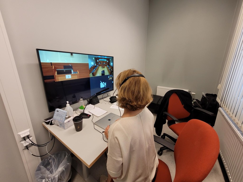 Bordene er svært smale og uhensiktsmessige, de er ikke beregnet på bruk av pc, nettopp fordi de er laget for en annen tid. Når tolkene i tillegg må bruke rettens pc til fjerntolking, blir det fysiske arbeidsmiljøet svært lite tilfredsstillende. Tolkene kan ikke og bør ikke bruke egne pc-er til tolking, da kan tinghusets teknikere ikke bistå dersom noe skulle skje og det er også større sjanse for at det gjør det, særlig i saler uten fellesvisning, idet maskinen må kunne håndtere store dokumentsamlinger, glossarer/ordbøker, og Pexip på en og samme laptop. Det er også kognitivt svært mye mer krevende å tolke via skjerm, om ikke tolken også skal måtte skifte mellom visningsbilder og dokumenter/glossarer mens han tolker.